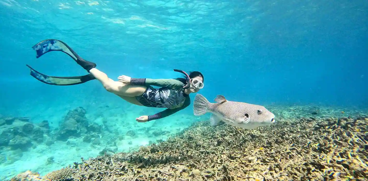 ✔️ อุปกรณ์ดำน้ำตื้น หน้ากาก และเสื้อชูชีพ